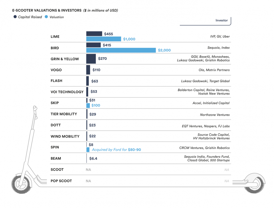 (Monetary valuation of the leading e – scooter companies)
