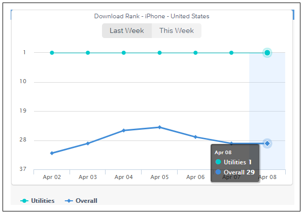 Below is a graph from App Annie. It shows the ranking of Bitmoji app in the Utility category and overall. It can be seen that the Bitmoji app ranks 1st in the utility category and ranks 29th overall. This is according to last week’s statistics.