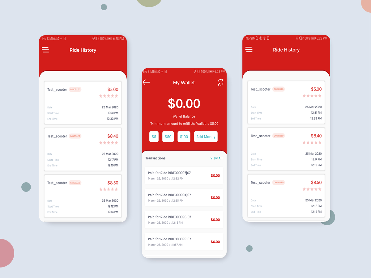 - Show ongoing, completed, reserved and canceled rides