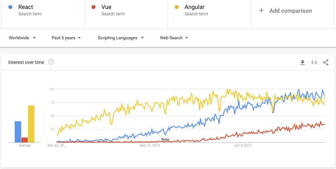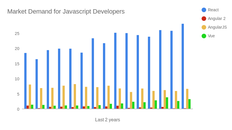The following image depicts that the popularity of React.Js has skyrocketed in recent times and even surpassed its biggest rival, Angular.Js.