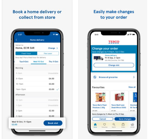 Using the Tesco app you can order food shopping and get your groceries delivered at your doorstep. You can also collect them from the store.