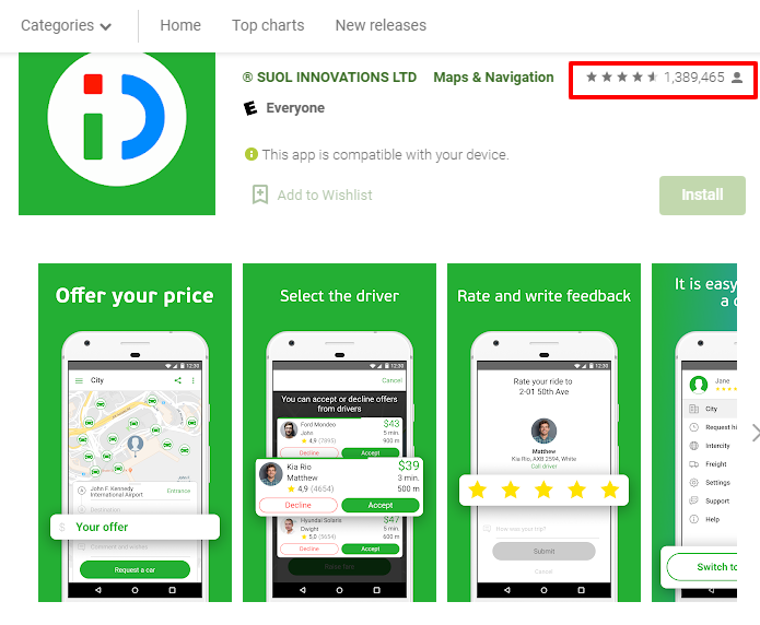 On Google Play Store alone, more than 1 million users have reviewed it and even with a high number of ratings, the overall rating of the inDriver app on Google Play Store is 4.6.