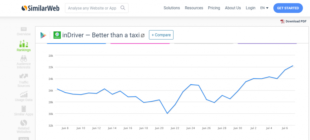 Here is a graph of the inDriver app’s growth from a trusted site Similarweb.