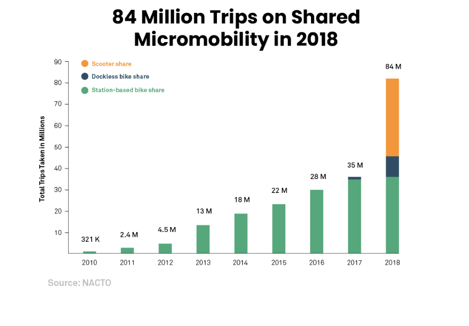 Rising city congestion, gasoline price and vehicle price makes people fond of public transportation. It is cost-effective, faster and safer than driving own vehicle. But at the same time, it does not give comfort and flexibility to users. Thanks to this only disadvantage which really matters to most people, people prefer to rent e-scooters for the daily commute, visit the nearest store and explore the city. According to NACTO, people completed 84 million trips on shared micro-mobility vehicles in 2018 only. This number clearly depicts the mass adoption of e-scooter sharing mobile apps.