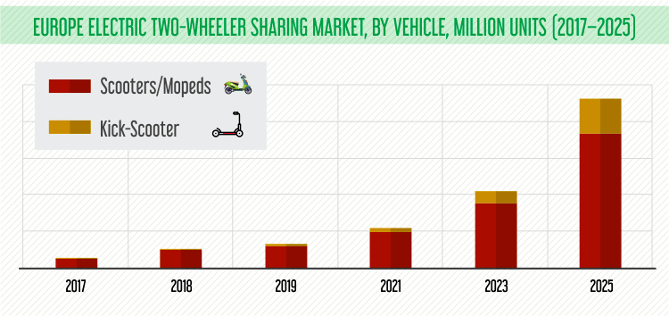 As of now, in almost all European cities where government regulations are not the barrier, people have many options to rent e-scooters. According to the report published on PS Market Research, the European electric two-wheeler sharing market is expected to reach $597.2 million by 2025, growing at a CAGR of 35.0% during the forecast period. Increasing technological advancement, rising concern over global warming, massive urban road congestion, and higher convenience are the major factors fueling the micro-mobility economy in Europe.