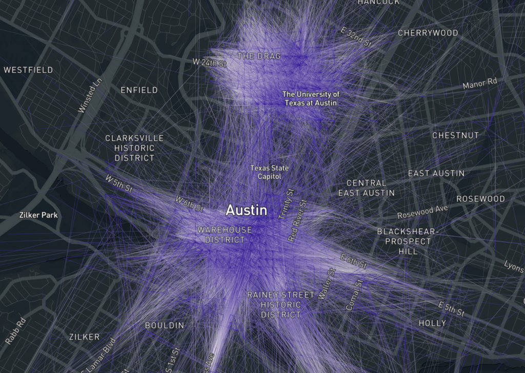 For instance, Lime which is the billion-dollar micro-mobility startup first launched its service at the University of North Carolina at Greensboro. Another USA-based one of the latest micro-mobility startups, Fly Rentals, has started its service around Western Michigan University. Moreover, if we look at the data provided by the Texas government, we can clearly see (in the following image), the usage of e-scooters is very high close to The University of Texas.