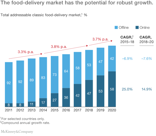 With the online platforms for food delivery service are making inroads around the world, the food-delivery market of the APAC region is yet to explore its full potential. We’ve already seen much of that growth pattern play out in Europe, from 56% growth in Sweden to 43% growth in Austria. On the other hand, Asia, Latin America, and the Middle East are at the beginning of their growth cycle in the food delivery spectrum.