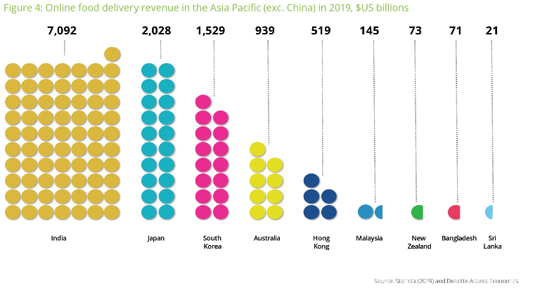 It is expected that the Asia Pacific will be home to more than 10 Billion people by 2050, and almost 9/10 of them will be middle-class consumers, and 1/4 people will be over the age of 60. All these data points only towards the growing demand for food delivery in the region in the near future.
