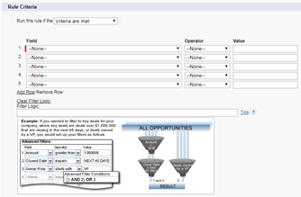 By default, all conditions and field criteria are mandatory and follow AND connection