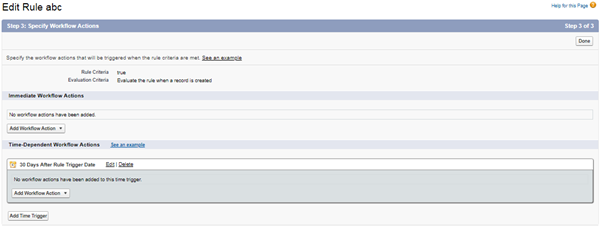 After time trigger is created, then we can add any new or pre-existing workflow action to execute as per the time trigger setup