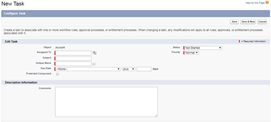 New Entry in the task object is entered which will be related to the record that triggered the execution of the workflow in the first place. You can add multiple information in the task at the time of creation of the task.
