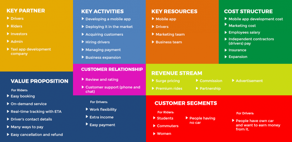 A business model canvas of taxi apps like Uber