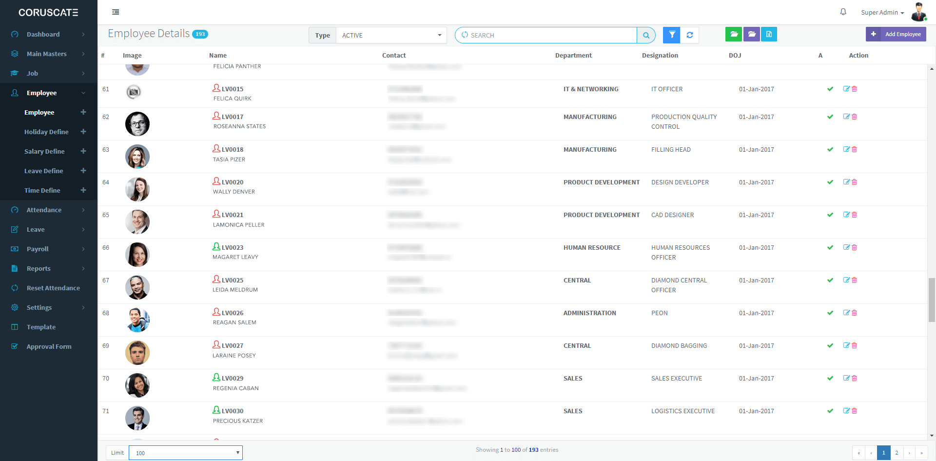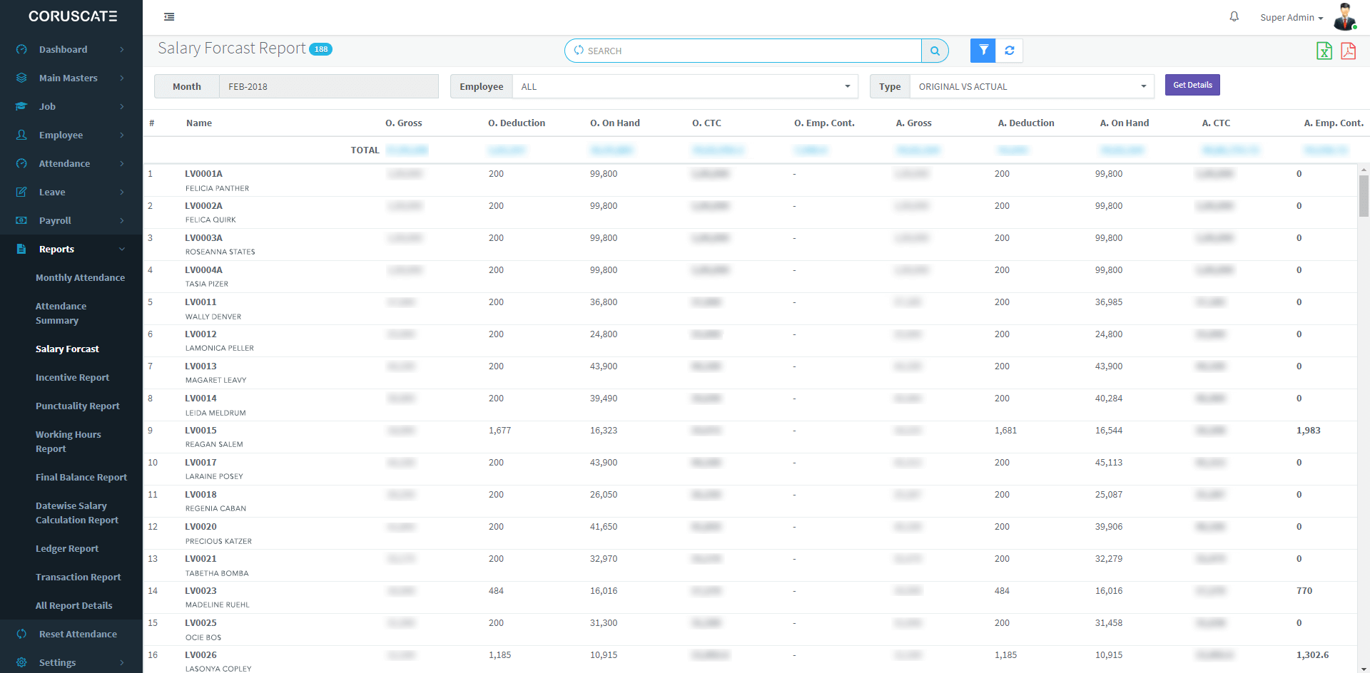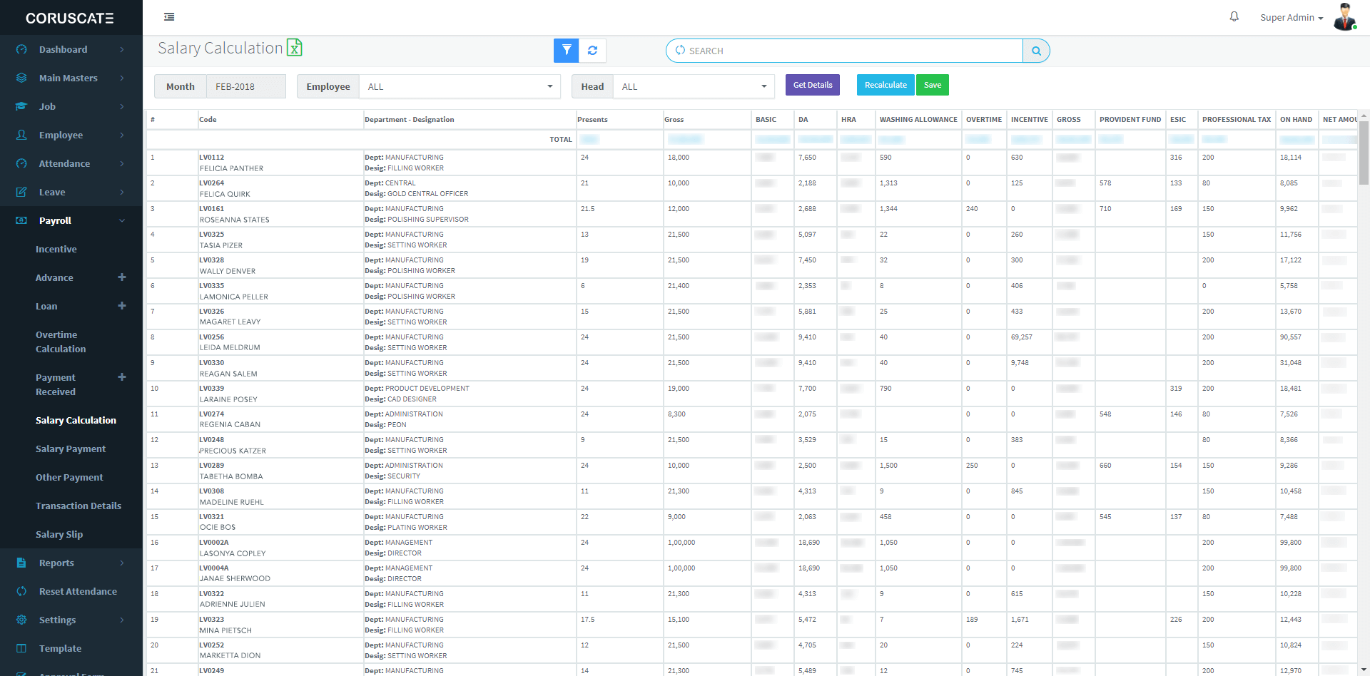 - The final salary calculation is automated based on the leaves, attendance and other factors added to the algorithm.