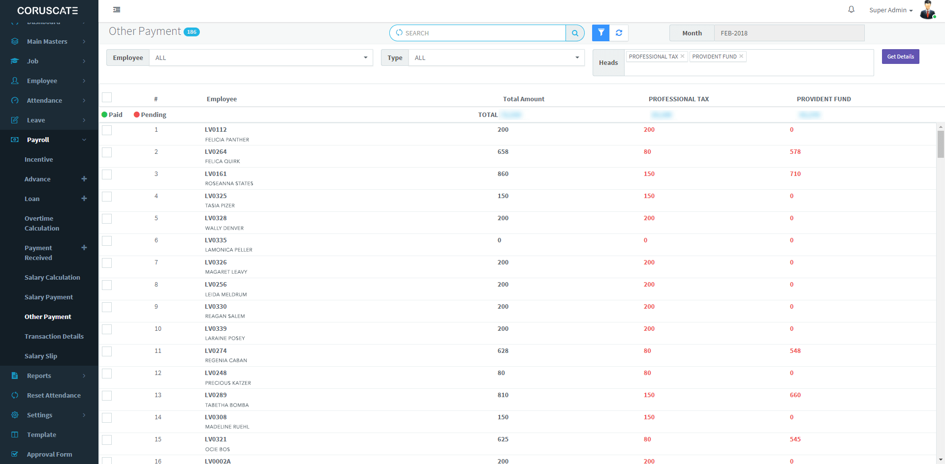 - The management and team lead should have a bird’s eye view into each employee’s salary, leaves, late coming, overtime etc. The management should be able to see each leave taken, and whether it has been approved or not. Same goes for late coming and overtime.